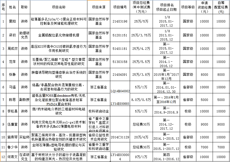 学院关于2014年大型仪器设备开放基金申请项目推荐结果的公示